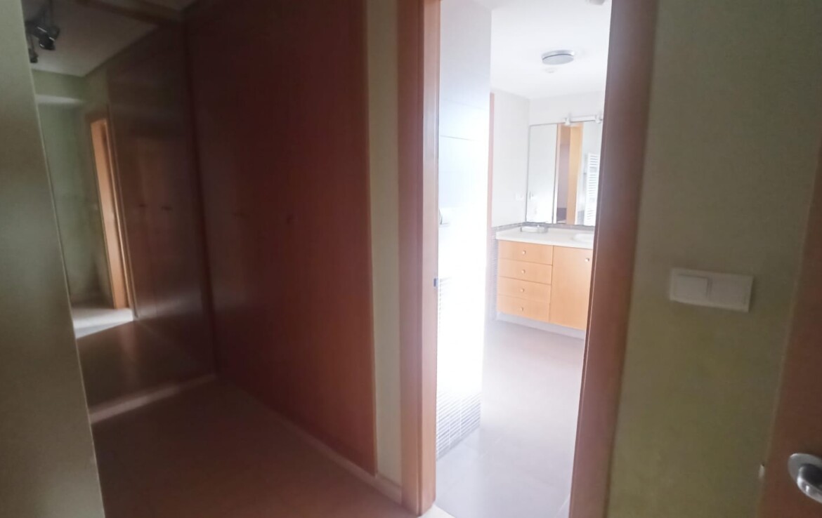 Primera planta: recibidor con acceso a terraza de 20 m², dos habitaciones dobles tipo suite, cada una con baño completo y armarios empotrados. Uno de los dormitorios dispone de terraza privada de aprox. 10 m².