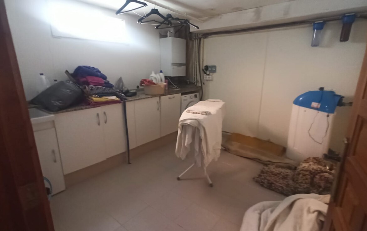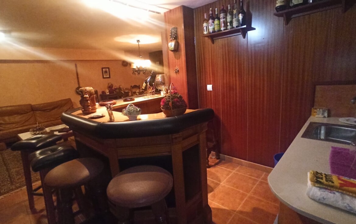 Sótano: acogedora sala-bodega con barra y fregadero, amplio garaje, habitación de 14 m² para lavandería y un práctico trastero.
